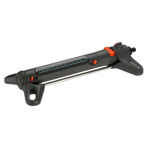 Осциллирующие дождеватели имеют характерную форму, похожую на настоящую дождевую струю. Они оснащены специальным механизмом, обеспечивающим автоматическое вращение головки с струей воды. Это вращение осуществляется в широком углу, что позволяет дождевателям охватывать значительную площадь без необходимости перемещения, но они имеют ограниченную дальность полива и не подходят для узких или нестандартных форм садовых участков. Так же к даному виду можно отнести и выдвижные дождеватели, которые устанавливают под землей и при поливе он автоматически выдвигается на конкретную высоту, после чего прячется назад. Дальность полива осциллирующих дождевателей может варьироваться от 4 до 15 метров в зависимости от модели.