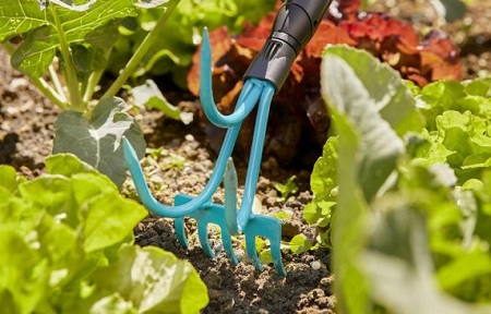 Граблі-Розпушувач Gardena Combisystem 2-в-1 оснащені трьома гострими піковіднимі зубами, які підійдуть для розбивання грунту середньої твердості, а так само на іншій стороні є граблі які підійдуть для очищення викопаних бур'янів.